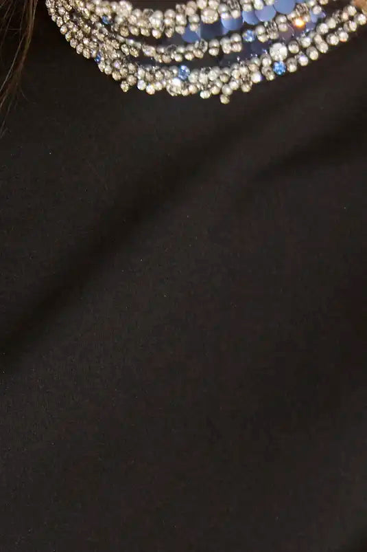 The Alexandra Dress in Onyx taffeta channels effortless 80’s glamour with a modern twist. A fitted knit bodice with long sleeves offers sleek comfort, while the dropped-waist bubble skirt in taffeta adds dramatic flair. Finished with a jeweled, sequin-trim neckline and a hidden back zipper, it’s an elevated choice for evening events or festive nights out.