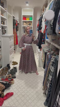 The Randolph Dress is a shirtdress with star power, designed to turn heads this holiday season and beyond. Cut in bold Alpine Plaid, it marries crisp tailoring with fluid movement. A sunburst circle skirt flares dramatically with every step, while full length voluminous sleeves with button cuffs keep the silhouette refined. The optional belt, crafted in white cotton faille and edged with plaid piping, is finished with a plaid wrapped buckle and grommets to cinch the waist and define the shape. Complete with a center front button placket, Randolph is a polished, season spanning staple destined to be worn on repeat.
