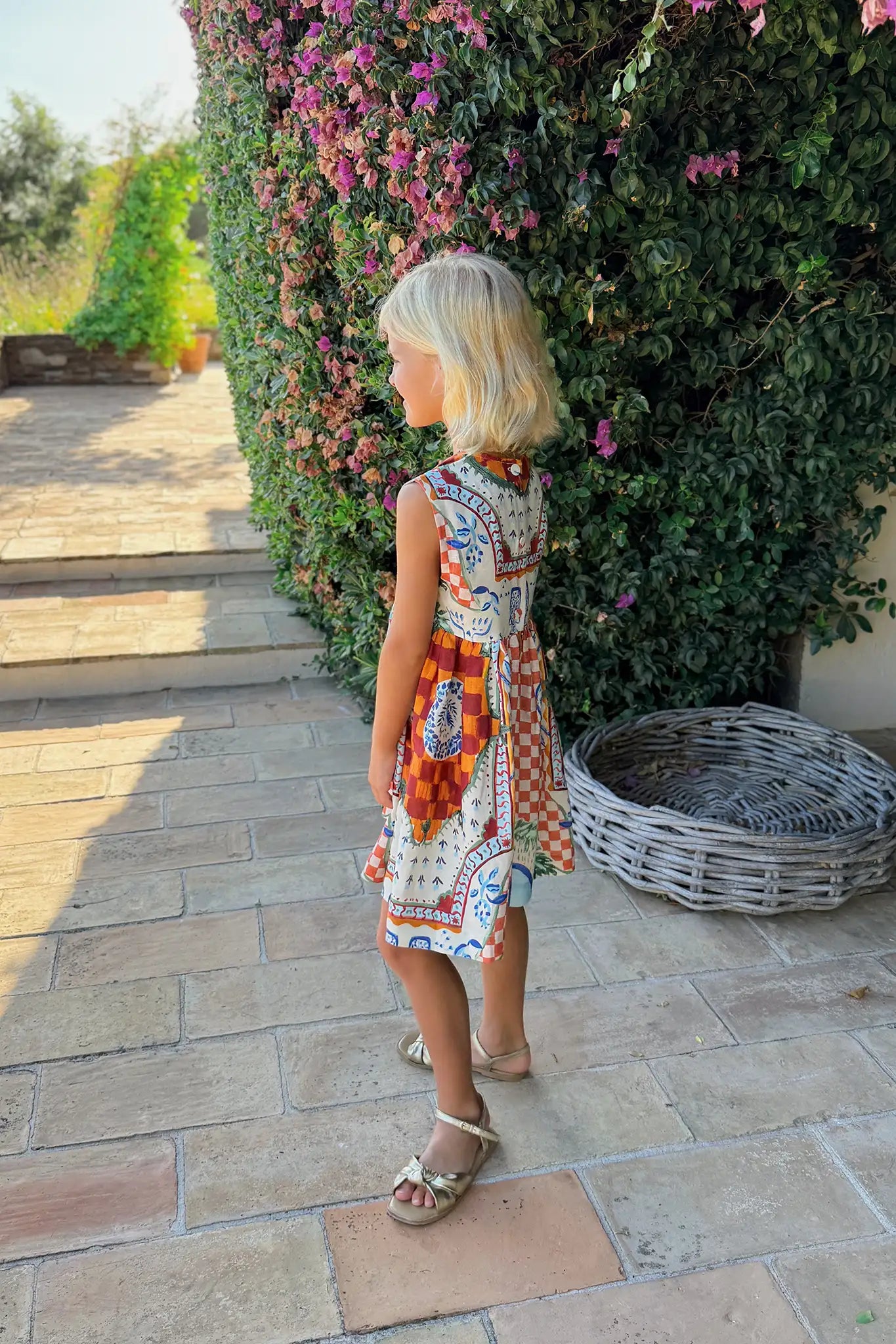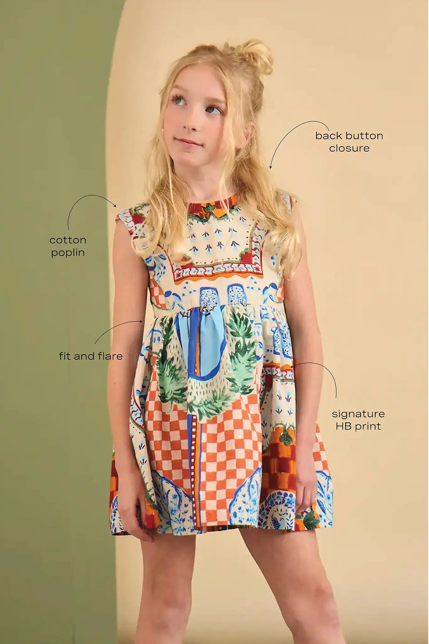 The Piper Dress is back in our charming Sundance Tile print, bringing playful polish to your little one’s wardrobe. This fit-and-flare style features a classic crew neckline, back button closure, and a full, knee-length skirt made for twirling. It coordinates perfectly with our women’s Nicole Dress, Yvette Dress, Brookie Top, and Eva Skirt for a sweet Mommy and Me moment that’s full of color and charm.