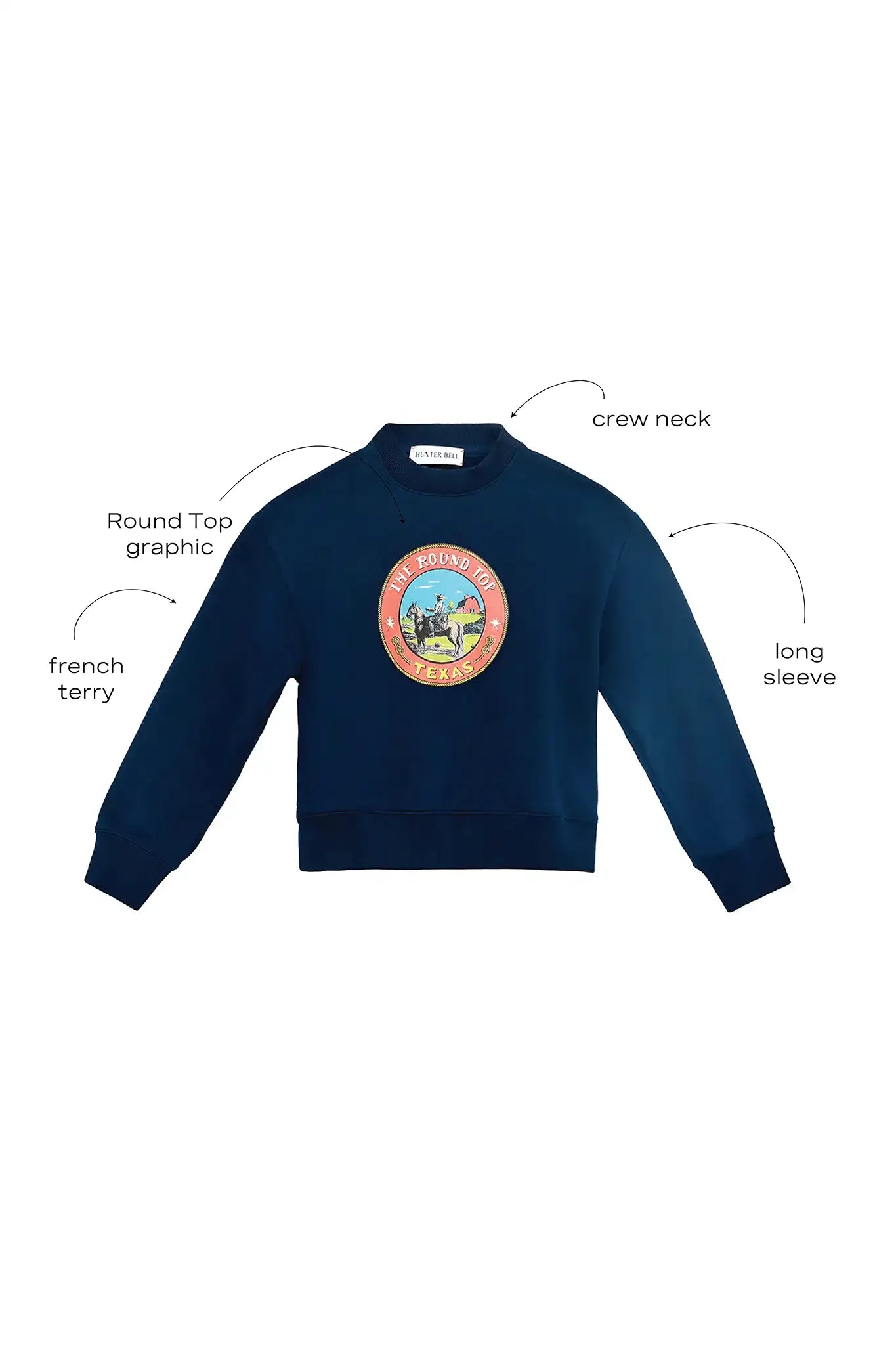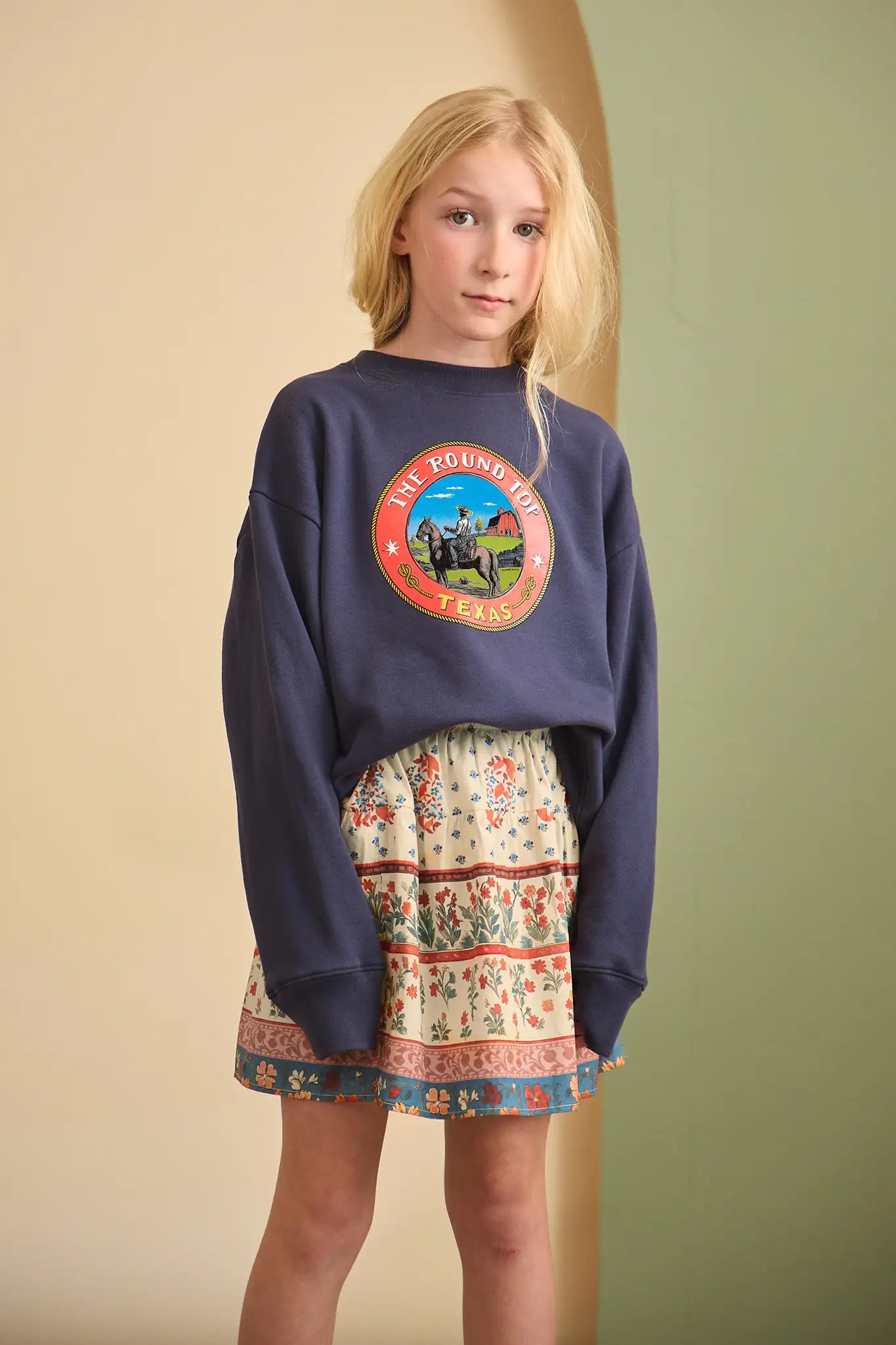 The Hunter Bell Kids Round Top Sweatshirt is a cozy staple with a playful twist. Made from soft French terry, it features a classic crew neckline, long sleeves, and a relaxed fit that’s perfect for school days, playdates, and everything in between. It pairs perfectly with our Kids Shepherd Skirt for an easy outfit and coordinates with the women’s version for a charming Mommy and Me moment you’ll both love.