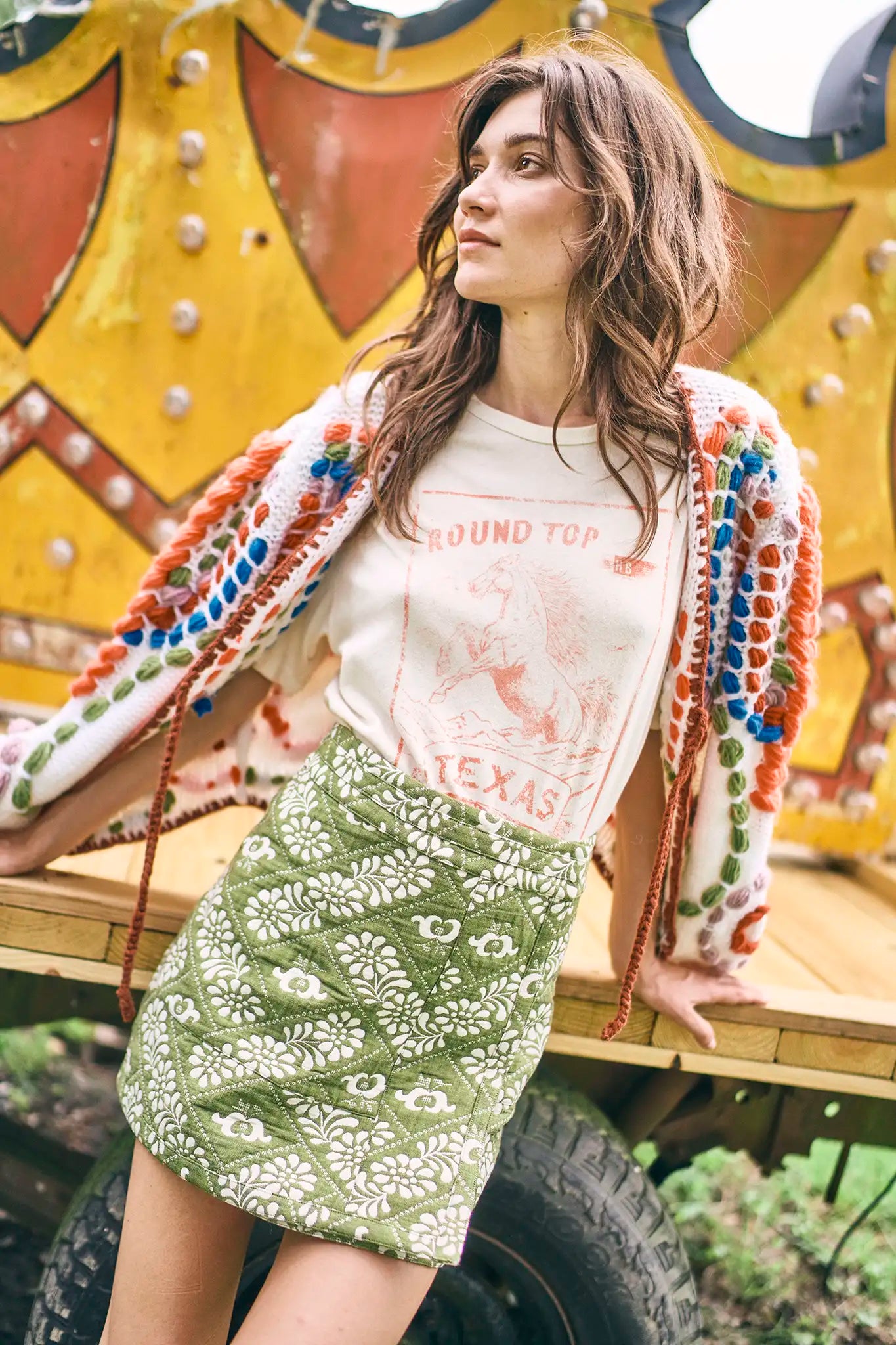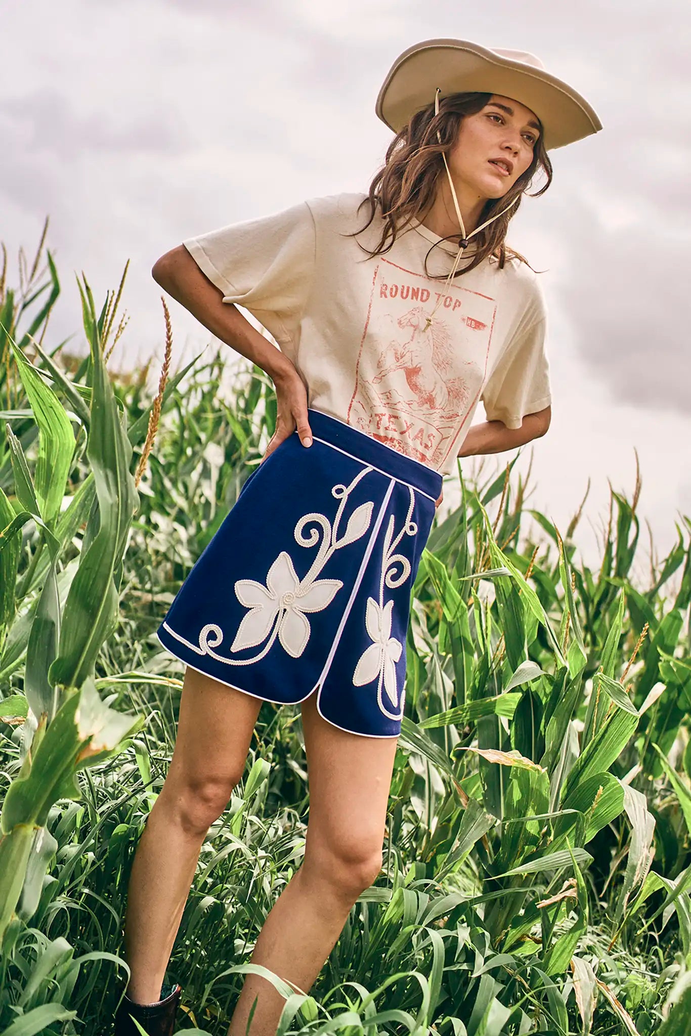 The Hunter Bell Rodeo Graphic Tee brings a nostalgic nod to Western style with a modern twist. Made from ultra-soft cotton jersey, this classic ringer-style t-shirt features short sleeves, contrast trim, and our signature HB rodeo graphic across the front. It’s so soft you’ll want to sleep in it, but polished enough to wear out and about. With its vintage-inspired vibe and easy fit, we love it styled with the Allegra Skirt or Dottie Skirt for a playful mix of casual and chic.