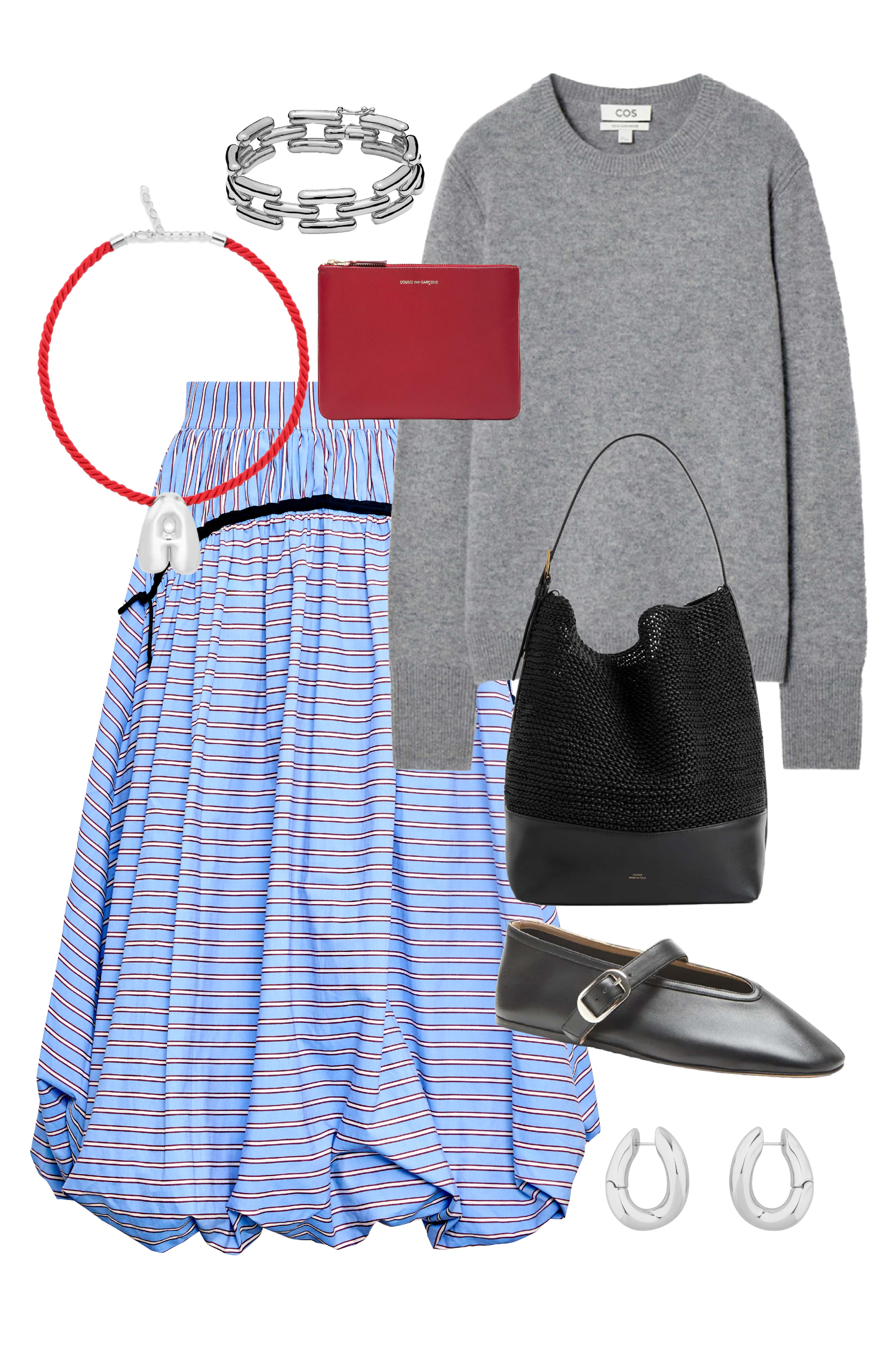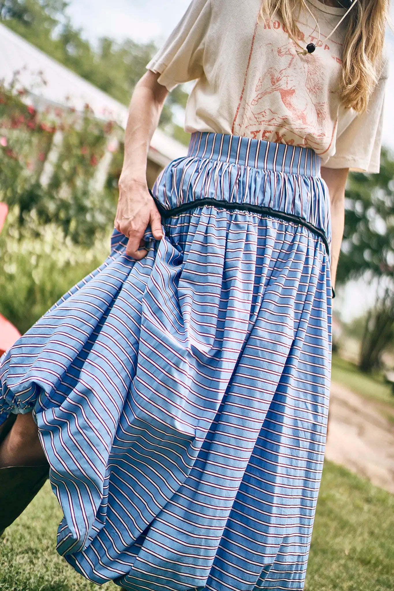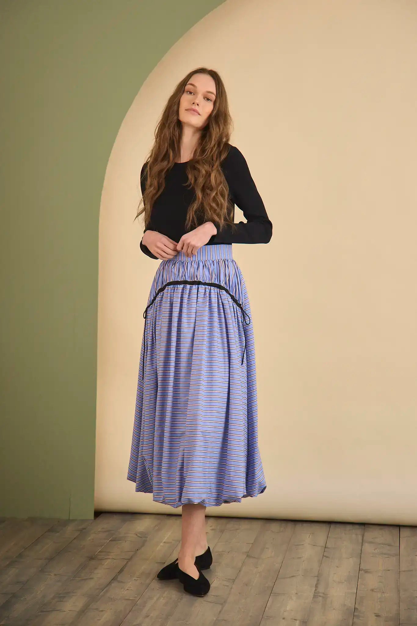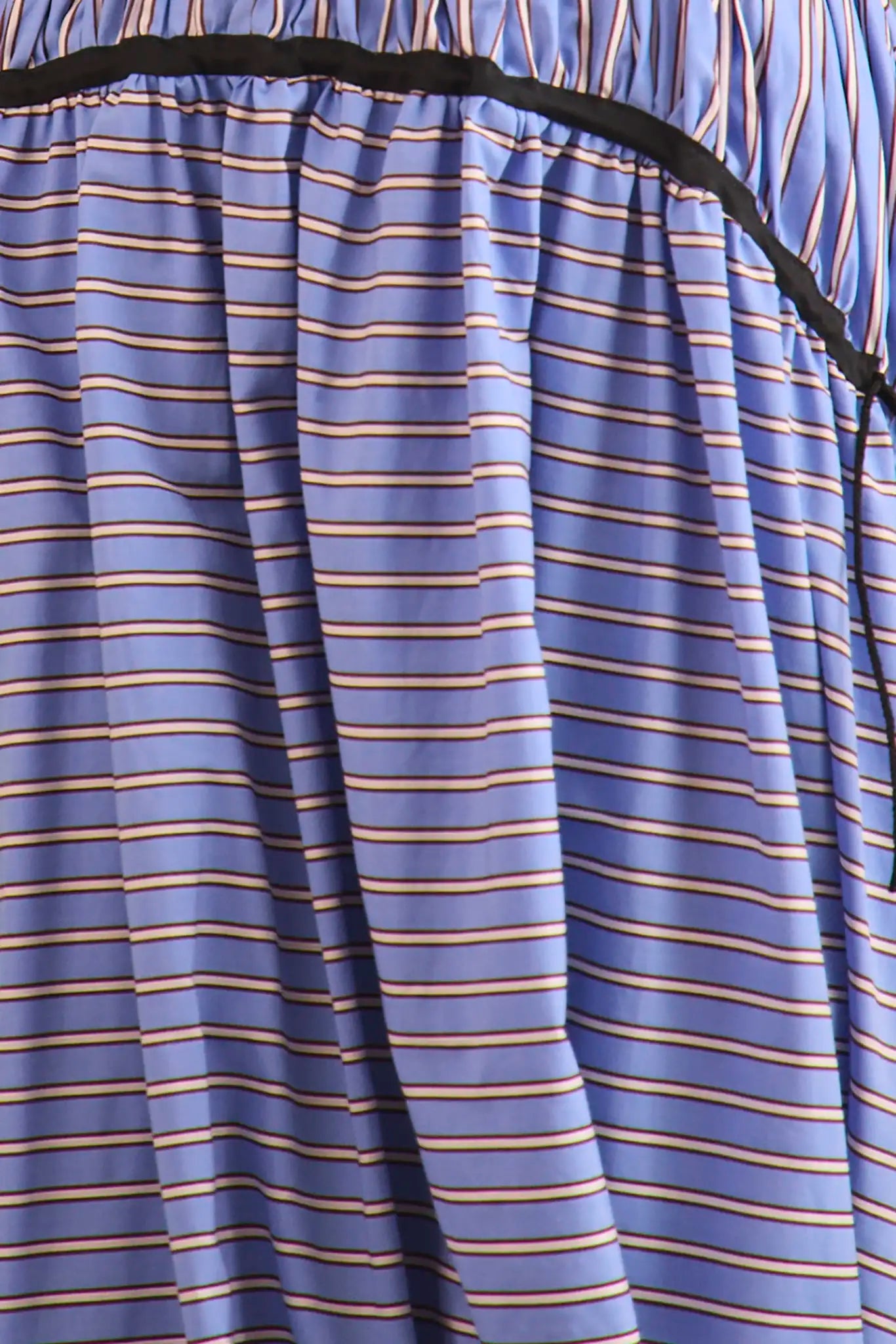 The Allegra Skirt is a bold blend of volume and sporty sophistication. Designed in crisp cotton stripe, this full bubble silhouette features a fitted flat waistband, back zipper closure, and an adjustable bungee cinch detail on the front panel for an athletic-inspired twist. With its dramatic shape and playful texture, it’s a statement piece that brings fresh energy to your fall wardrobe.