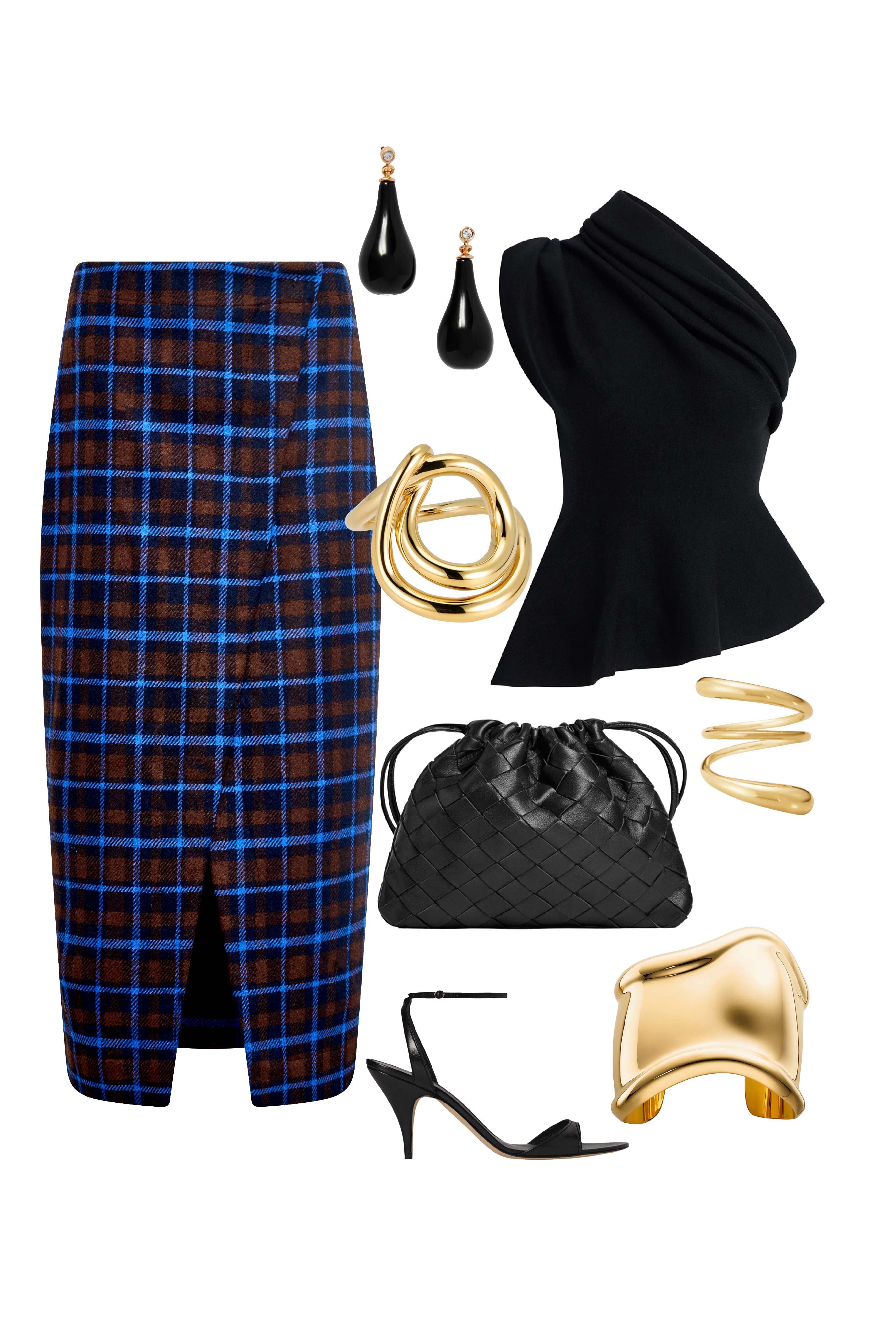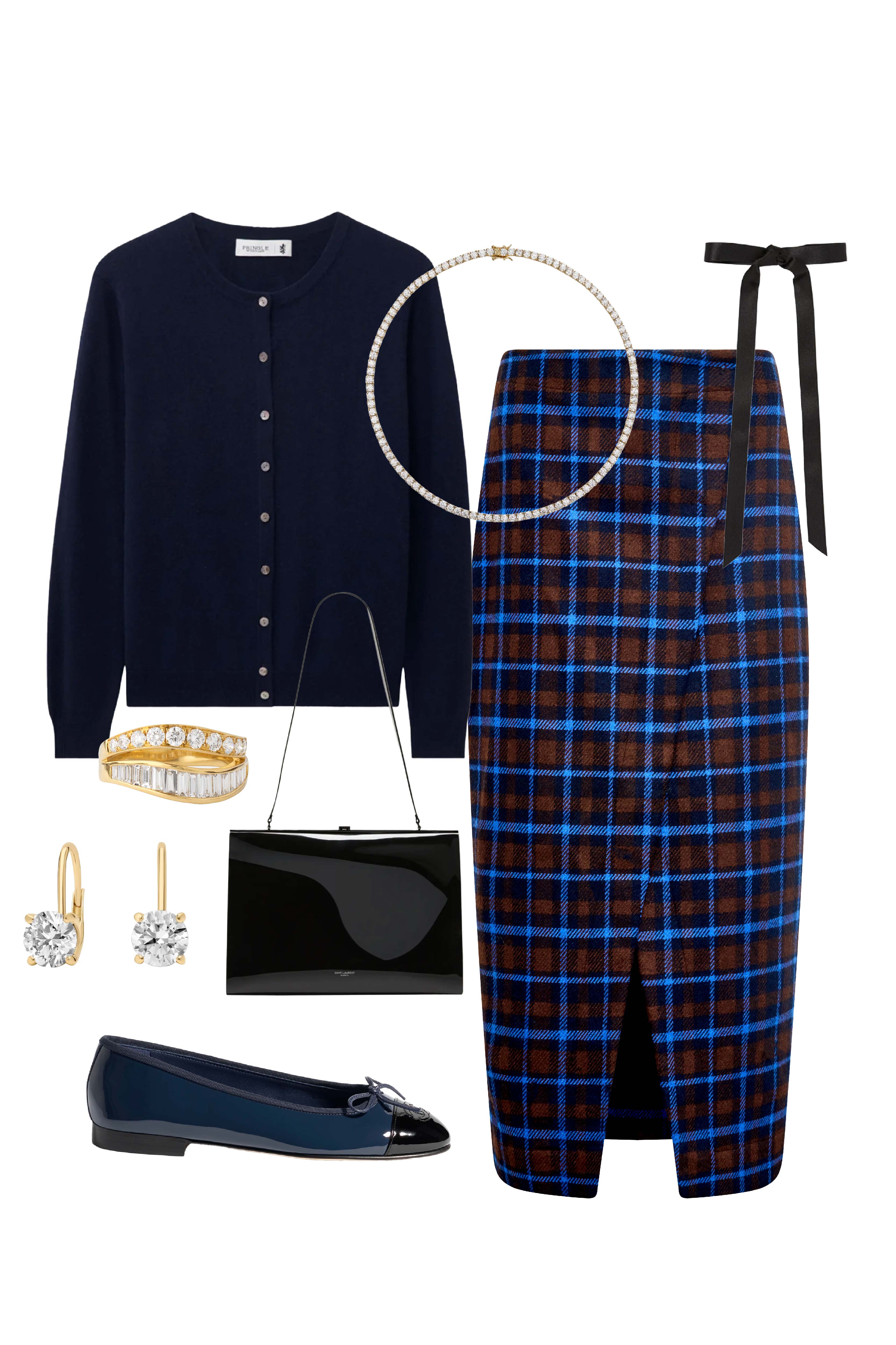 The Manor Skirt is a polished update to classic tailoring, crafted in Italian wool plaid suiting made from recycled textiles. Designed with a sleek wrap silhouette and secured by a discreet snap closure, this fitted midi offers a timeless look with modern sustainability in mind. A versatile piece for fall, Manor transitions seamlessly from office hours to evening outings. We love it styled with our Callie Sweater or Oxford Evangeline Shirt for an effortless balance of sophistication and ease.