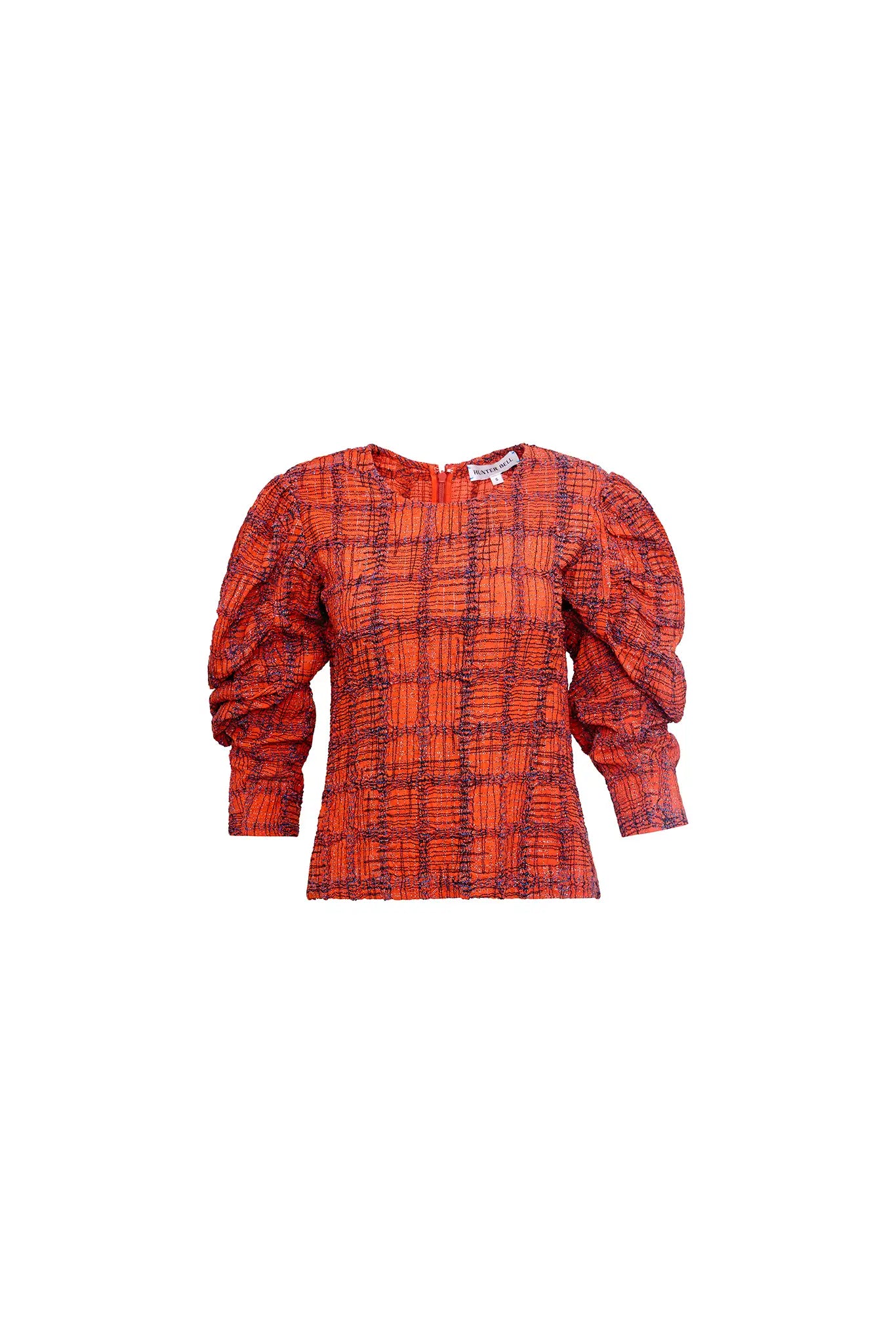 The Natalie Top is a striking silhouette that plays beautifully with volume and texture. Crafted from Italian embossed viscose woven with a subtle metallic thread, it features a cropped crew neckline and an elegantly fitted bodice balanced by dramatically full sleeves. A back zipper closure keeps the finish clean and refined. We love it styled with our navy faux leather Mabel Pants for a bold, modern pairing that still feels effortlessly polished.