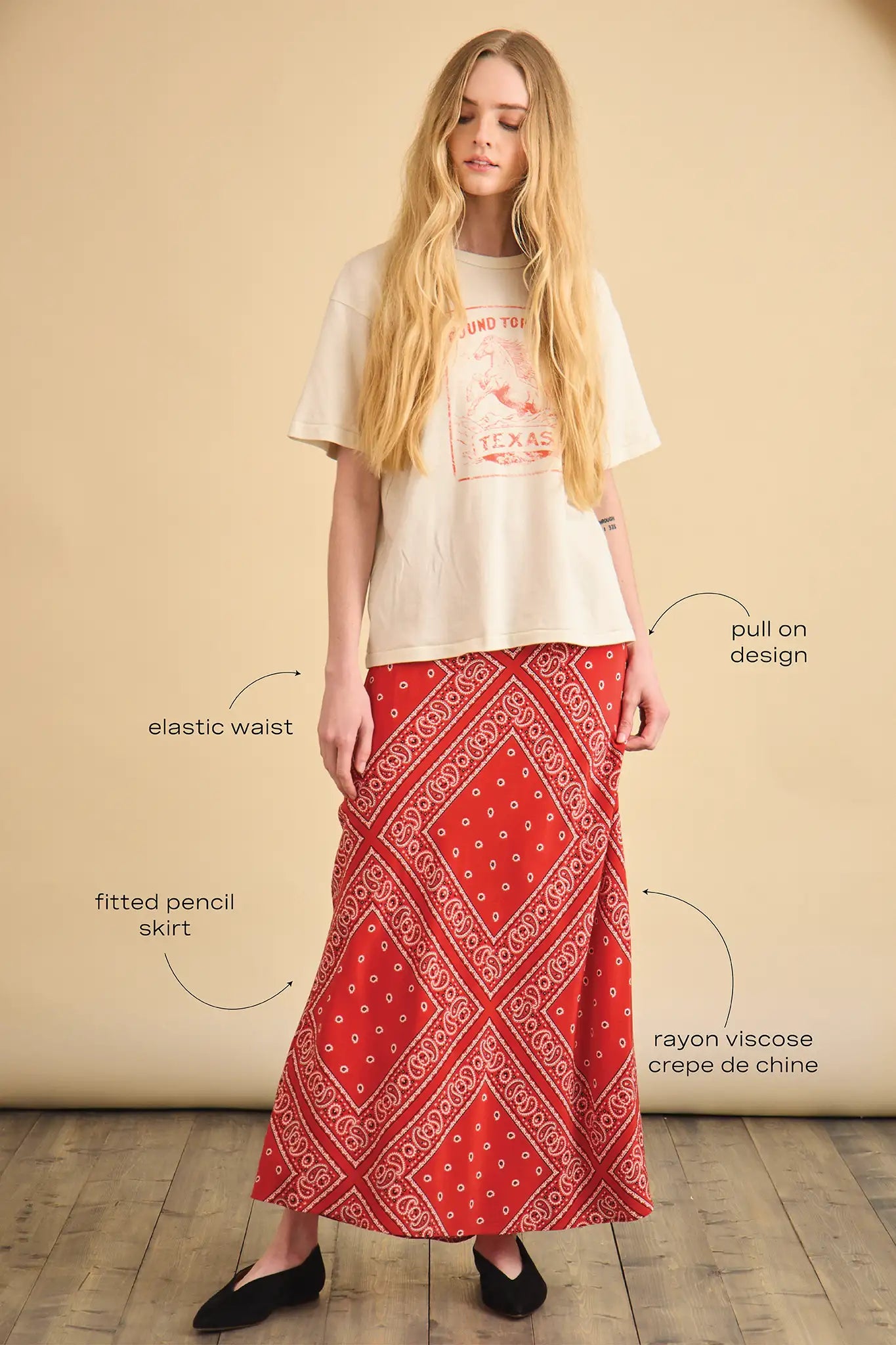The Suki Skirt brings effortless style to fall with its fitted pencil silhouette and easy pull-on design. Cut on the bias for a flattering drape, it features an elastic waist for all-day comfort. Pair it with the coordinating Frances Top for a striking set, or style it with our Round Top Tee, a favorite blouse, or a cozy knit for endless versatility.