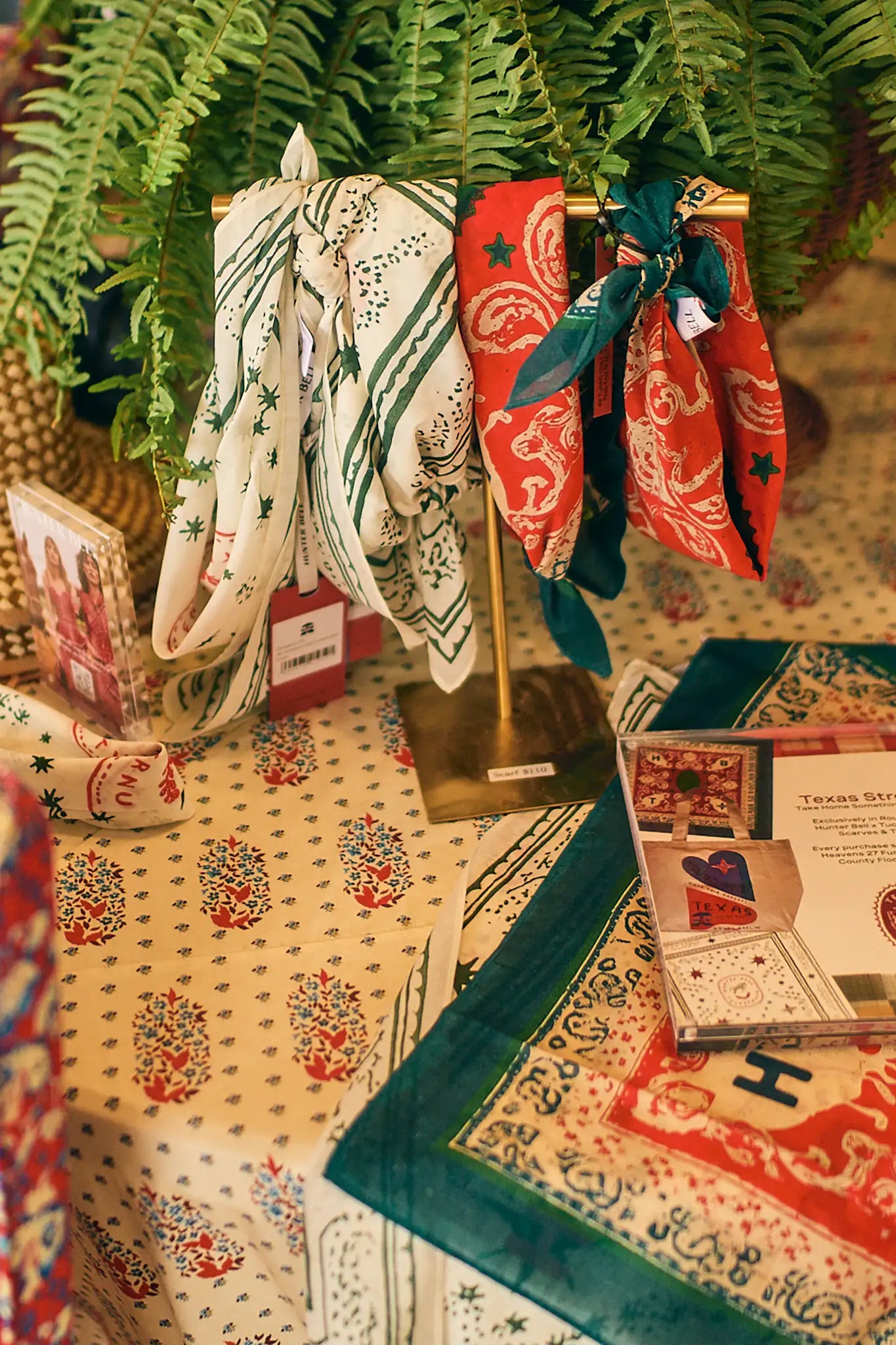 The HB x Tuckernuck Stars at Night Scarf is the perfect statement accessory to elevate your Round Top style and beyond. Designed in collaboration with Tuckernuck, this beautifully crafted scarf features a striking pattern inspired by the charm and spirit of Texas nights.