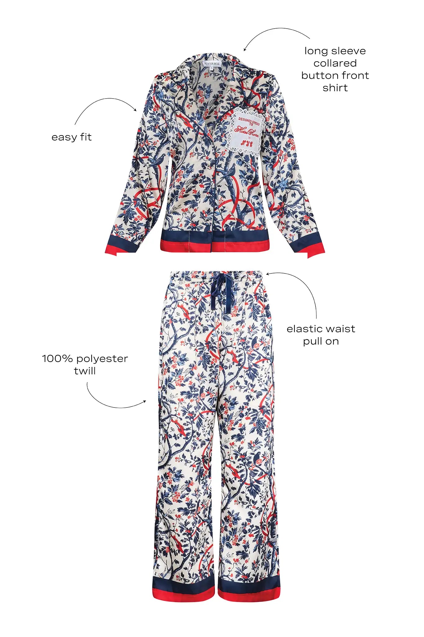 Introducing Sleep All Day, our brand new pajama set in the signature Gramercy Vine print. Effortless and pretty, this two piece set is made for lounging in style, with a long sleeve collared button front shirt and an easy elastic waist pull on pant. Equal parts cozy and chic, it is the perfect holiday gift for the fashion conscious woman who is notoriously hard to shop for. Every pajama purchase arrives in a signature HB Gift Box, ready to charm under the tree. Meant for lounging, gifting, and everything in between, this set is so polished you may just wear it out—we won’t tell.