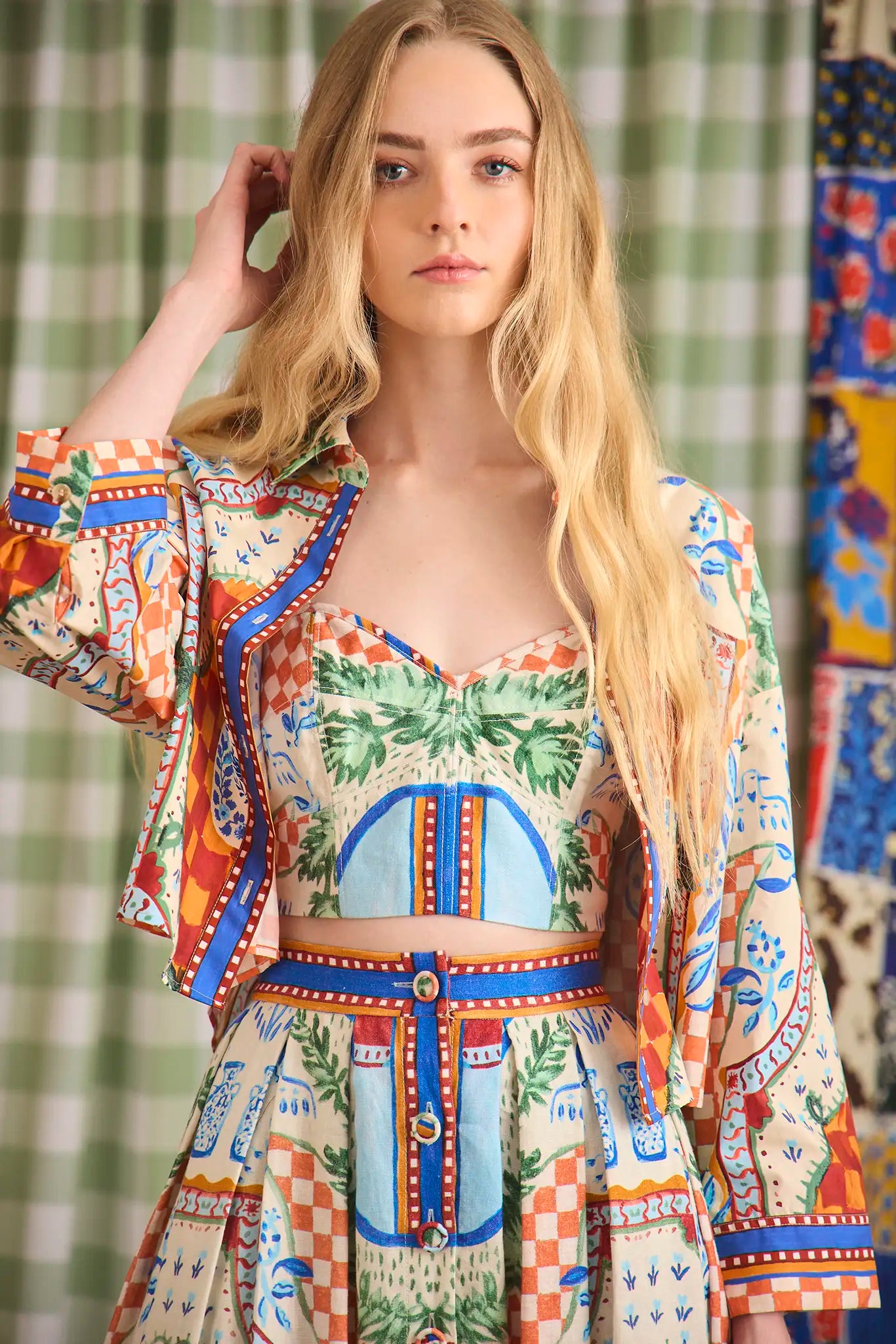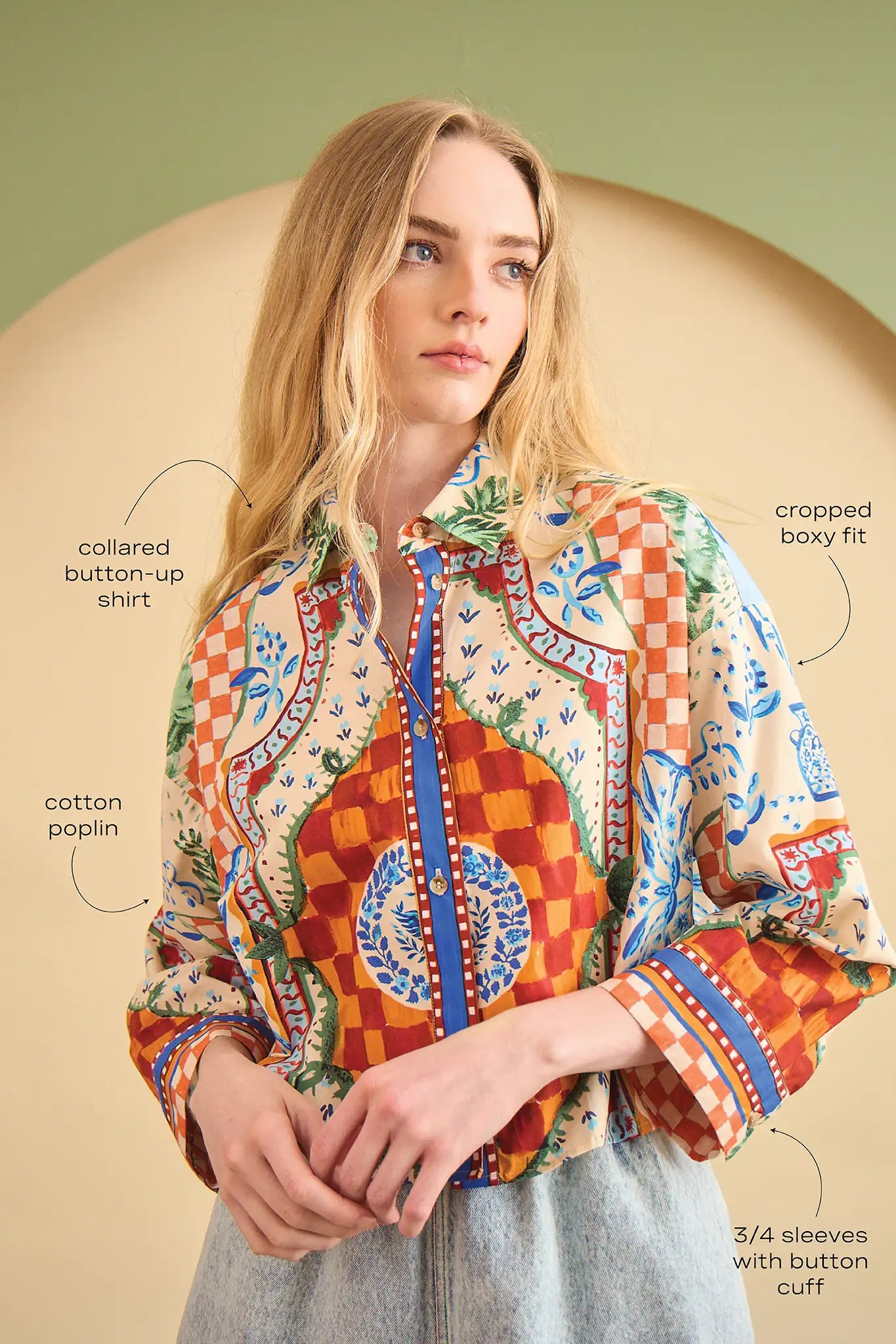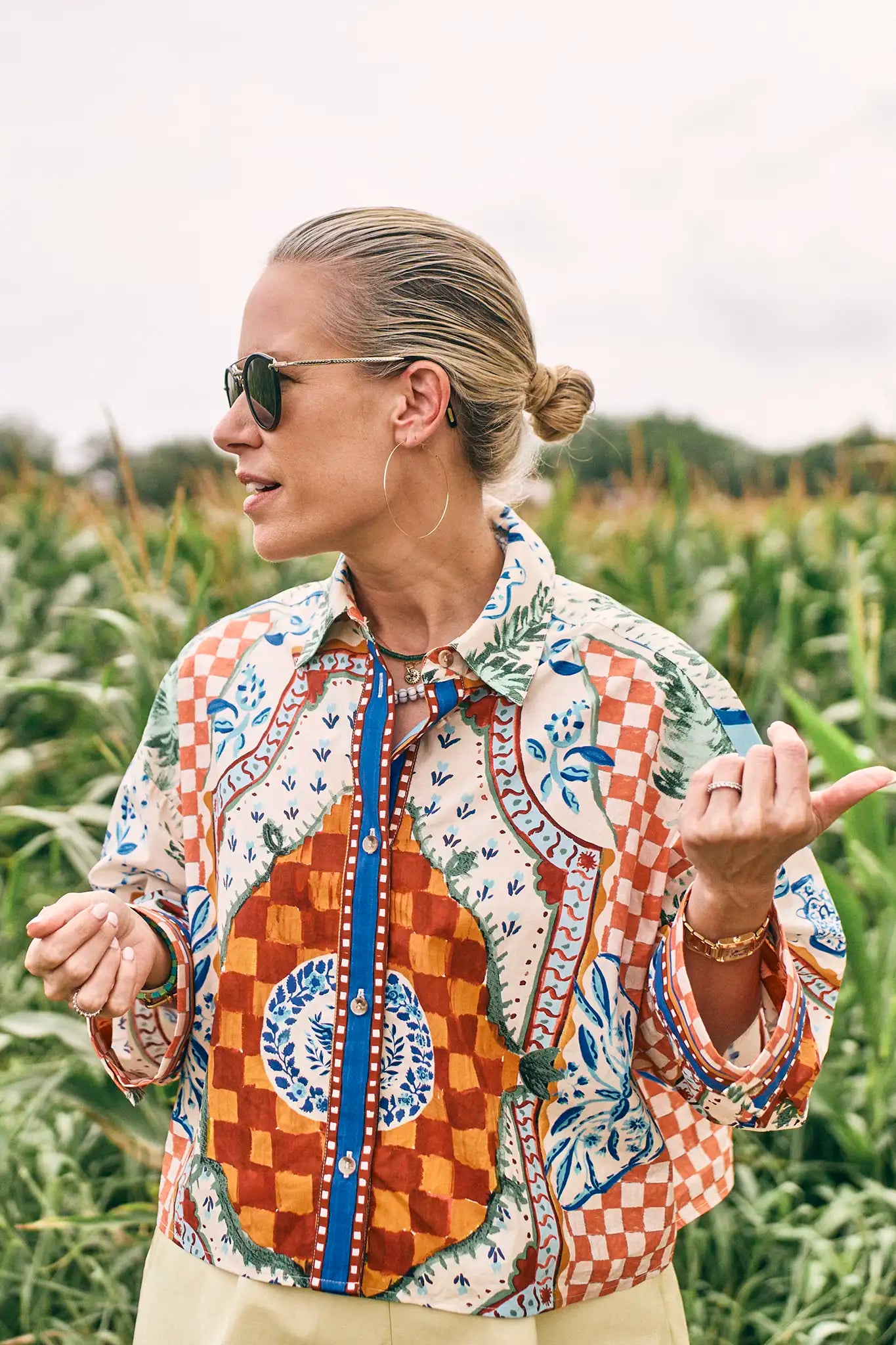 The sundance tile print and the fit of this shirt is fantastic. I'm wearing it with high rise shorts and boots for an upcoming concert and I'm so excited! The perfect piece to transition from Summer to Fall