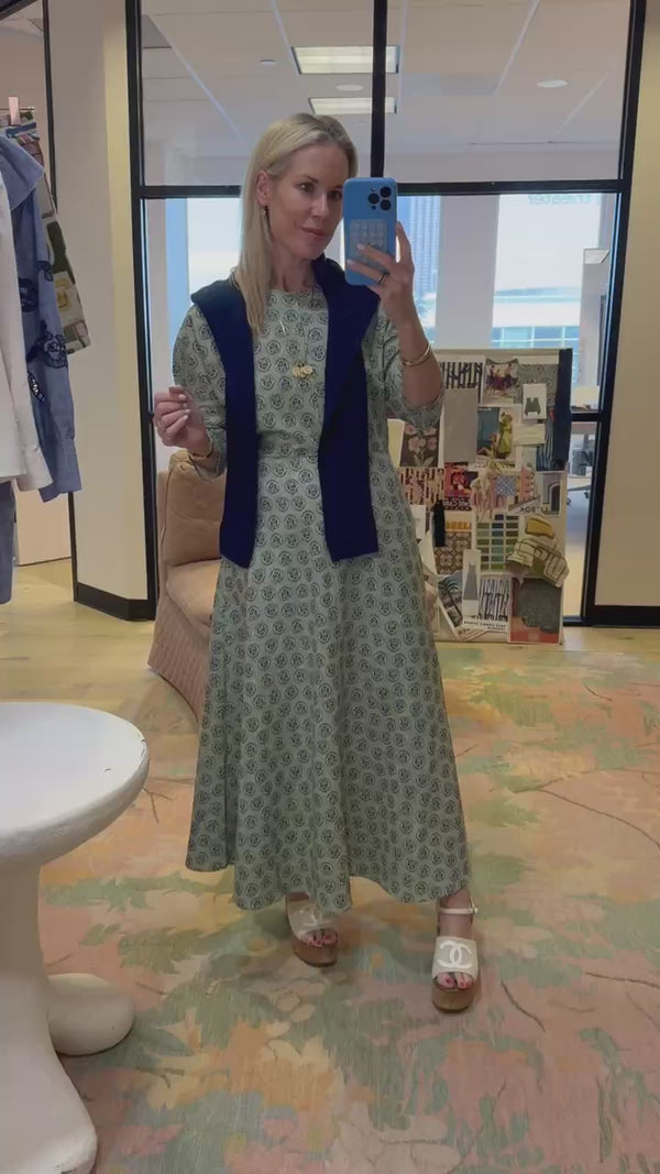 This is really fun. Talk about an easy throw on, buy now, wear now. I have it on with a sandal, but I would also pair with navy tights the Violette Sweater draped over. I have on a size 2, but I would size down to a 0.