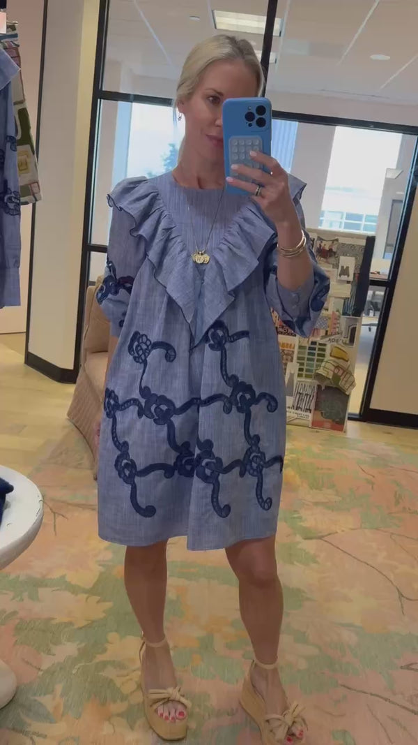This is the Azalea Dress in an XS. This style runs a little big like our Jenkins Dress so I recommend sizing down. It's super comfortable with side seam pockets and this amazing embroidery detail.