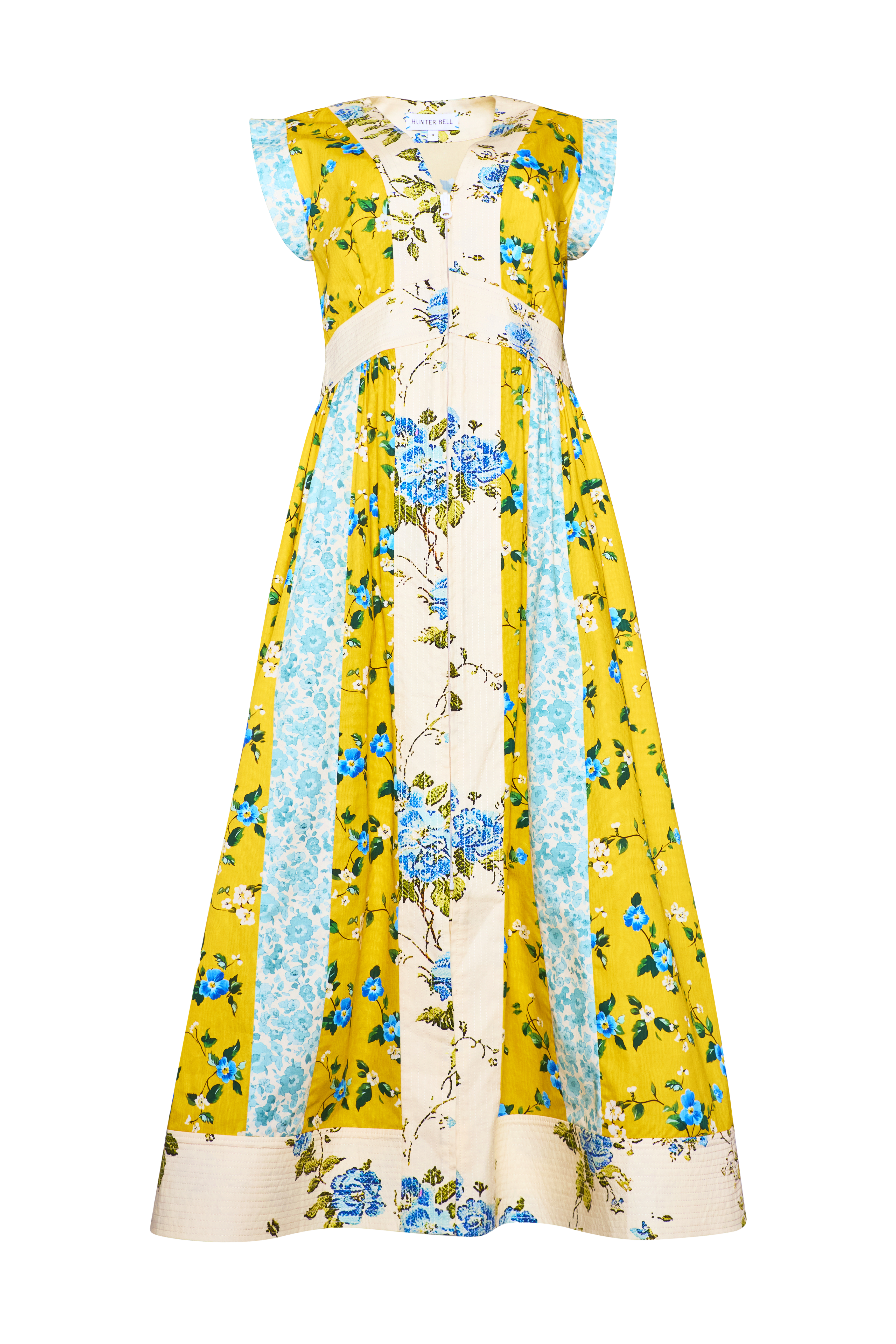 Middleton Meadow brings you delicate blue and white florals on a yellow moiré-inspired backdrop. Decidedly cheerful, this print will make you feel like you’re walking by the coast with a breeze in your back, even if you’re just running errands.