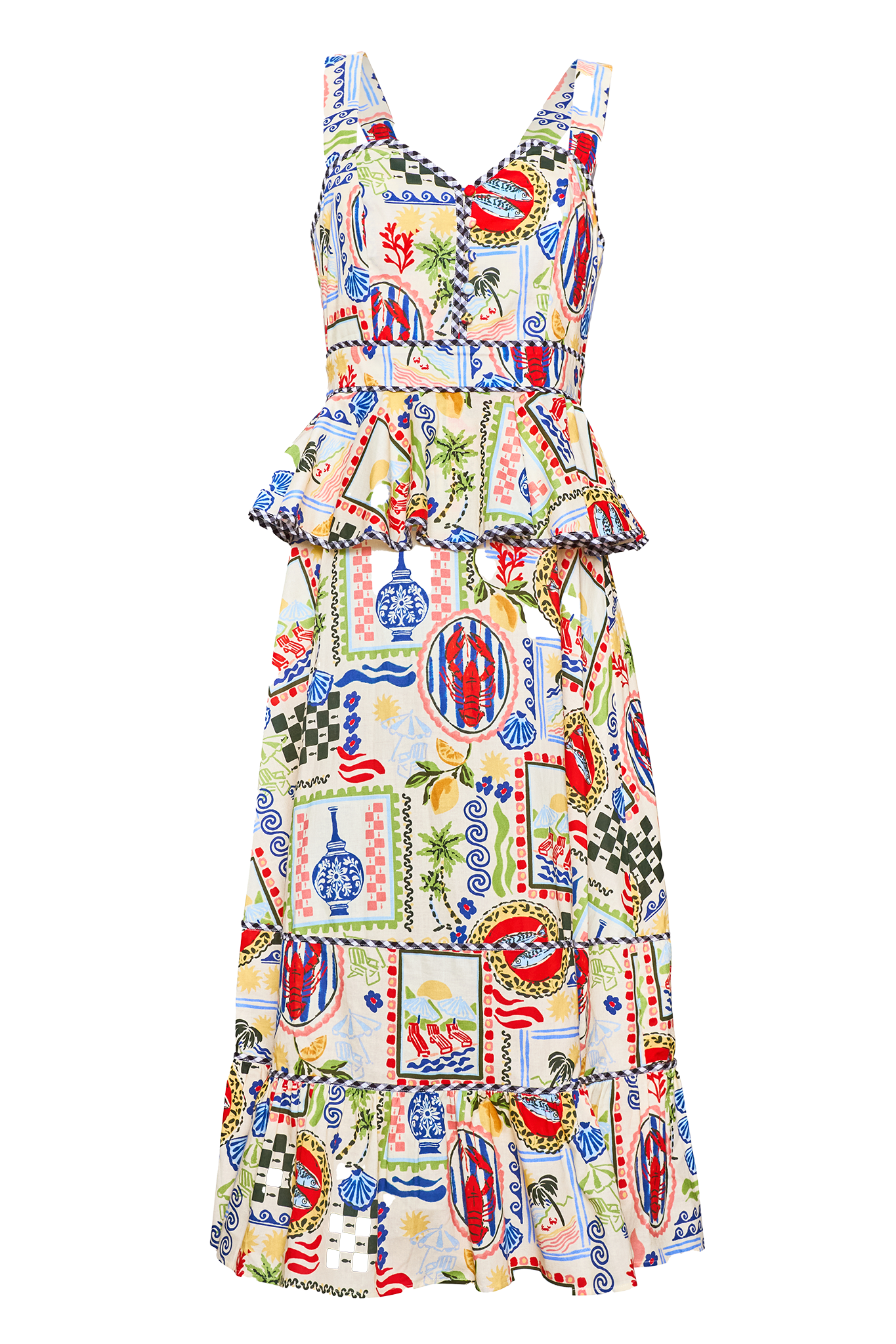 A conversation print if we’ve ever seen one, Coastal Conversation is a very HB answer to everyone’s favorite question: What are you wearing to the summer fête? Celebrating all things summer, this print brings you whimsical details such as lobsters, sardines, and playful nautical elements.