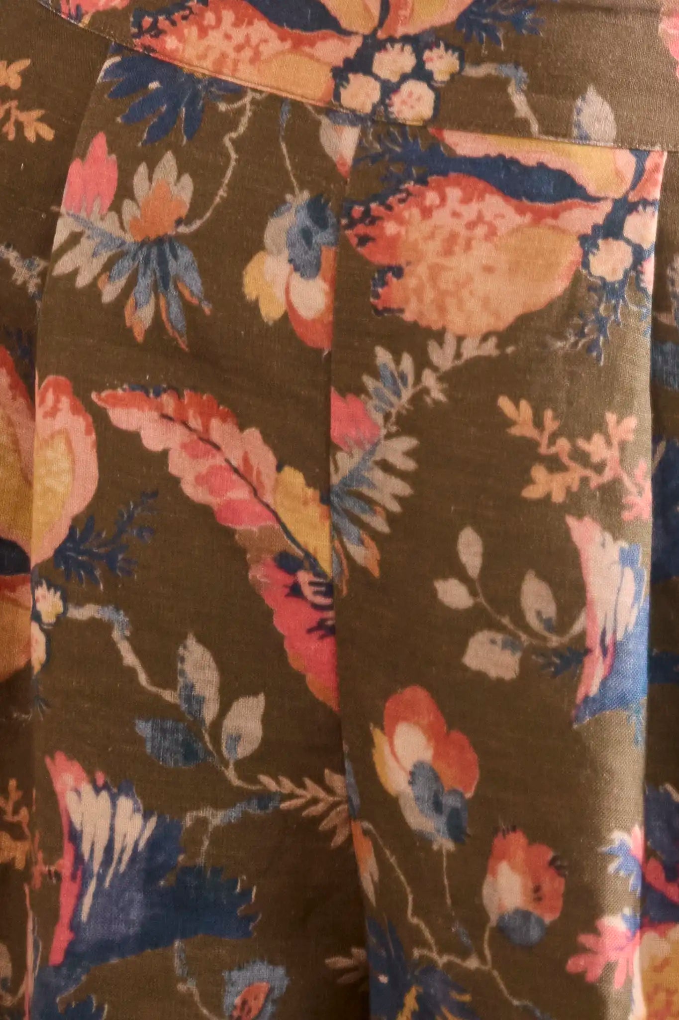 Brown Floral Pleated Shorts
