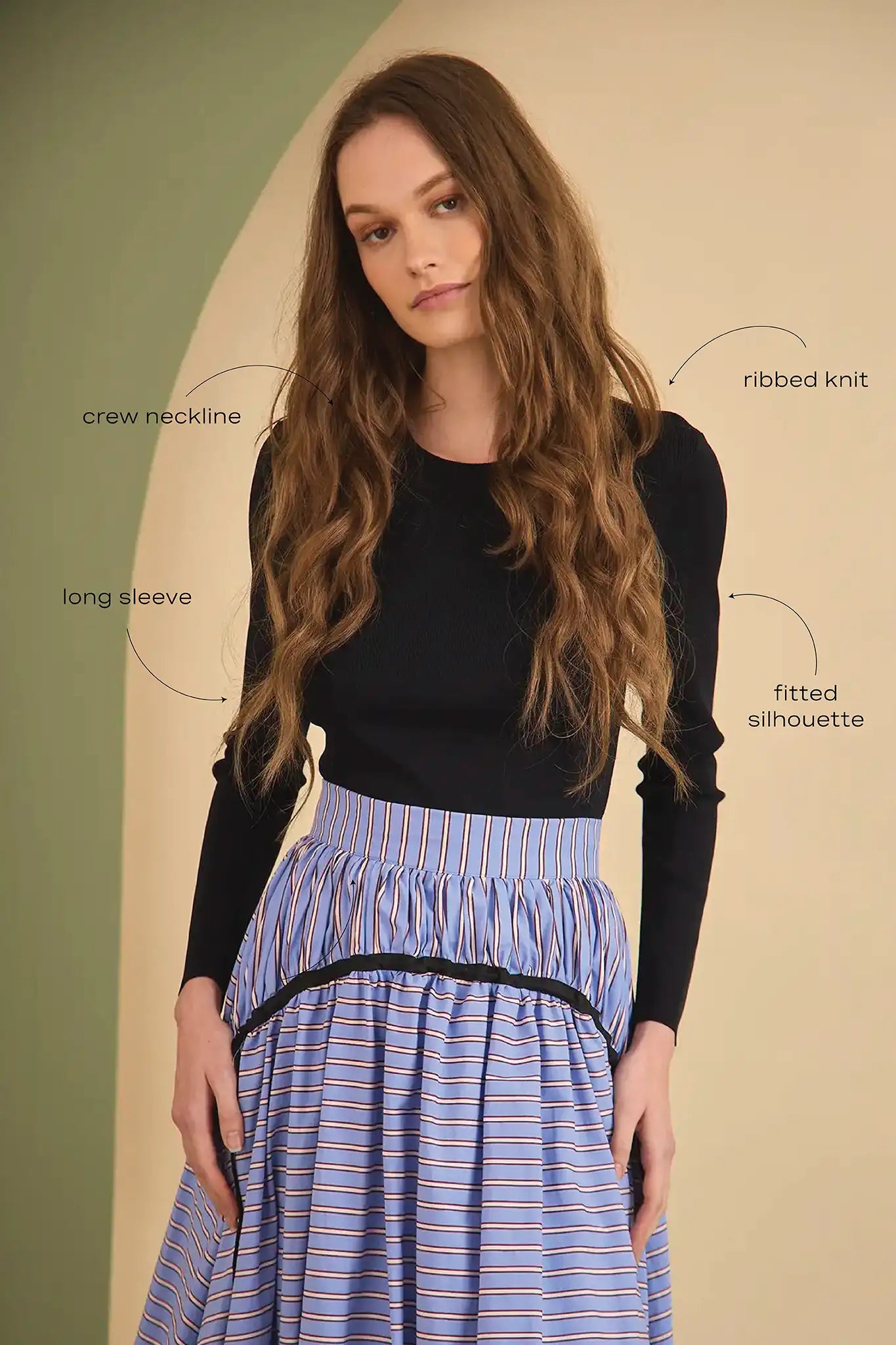 An essential you’ll reach for again and again, the Callie Sweater is designed to be the ultimate layering piece. Crafted from a soft, stretchy ribbed knit, it features a classic crew neckline, long sleeves, and a flattering fitted silhouette that hugs just right. Perfect on its own or styled under your favorite jacket, it pairs effortlessly with anything in your wardrobe. We especially love it tucked into the Allegra Skirt for a look that’s polished.