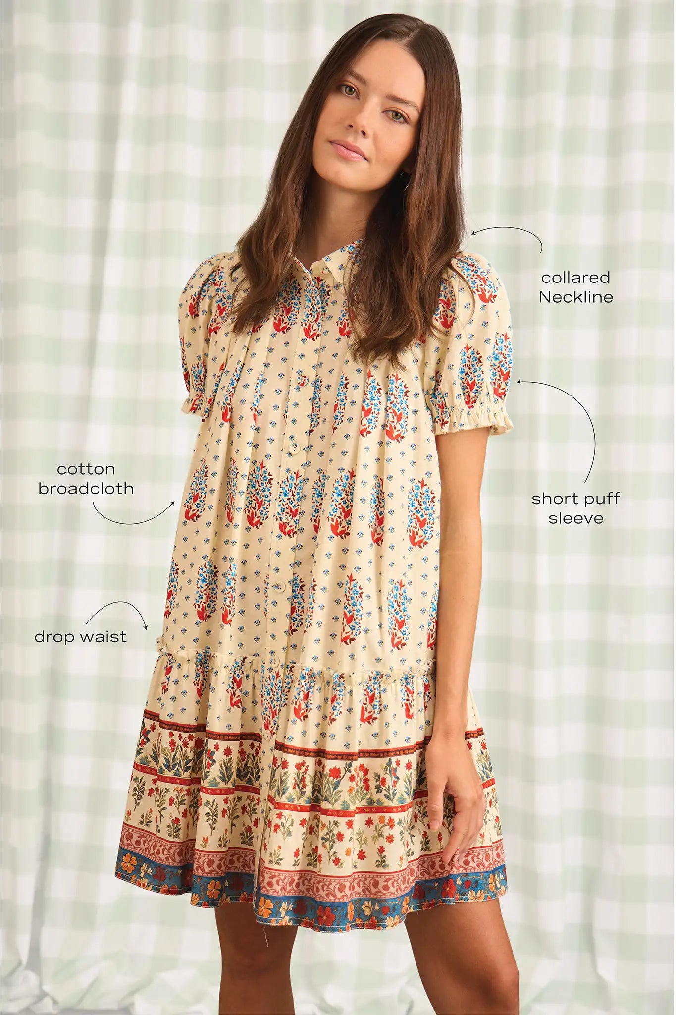 Our favorite mini is back in Fall Floral Cream, a soft yet striking print that feels just right for the season. The Drifter Mini is known for its relaxed silhouette and thoughtful details, from the polished collared neckline to the playful short puff sleeves. A drop waist and flounce hem add movement and shape, making it an easy choice for everything from weekday outings to weekend plans. It’s the kind of feel-good dress you’ll want to wear on repeat.