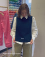 Meet Lizzie, the perfect layering turtleneck for transitional dressing. Knit in a navy wool blend, this pull-on sweater features open side seams laced with embroidered eyelet ties that create a modern and feminine twist. A subtle Bird Block motif is embroidered on the left chest, adding a signature HB touch. Easy, warm, and endlessly layerable, it looks especially chic slipped over the Jade Shirt or styled with the Randolph Dress for added texture and polish.