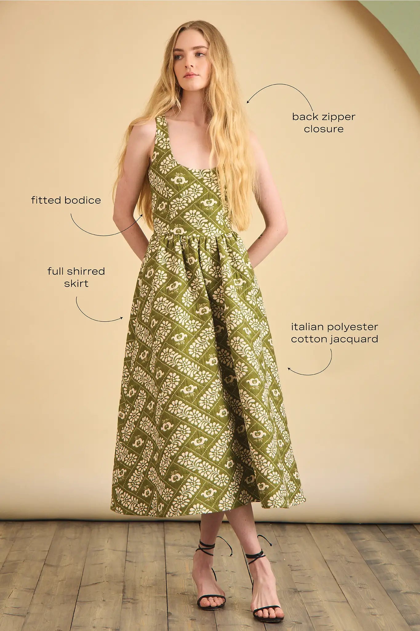 Command attention in the Maddy Dress, a refined silhouette brought to life in our luxurious Italian Legacy Jacquard. A scoop neckline and fitted bodice highlight the waist before flowing into a full, shirred skirt that moves with effortless grace. From a romantic fall wedding to an elegant evening out, Maddy is a timeless choice that turns every occasion into something unforgettable.