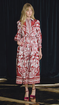 Toile Long Sleeve Midi Dress